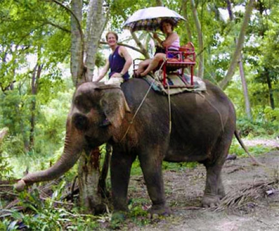 Michael driving mother Julie on an elephant