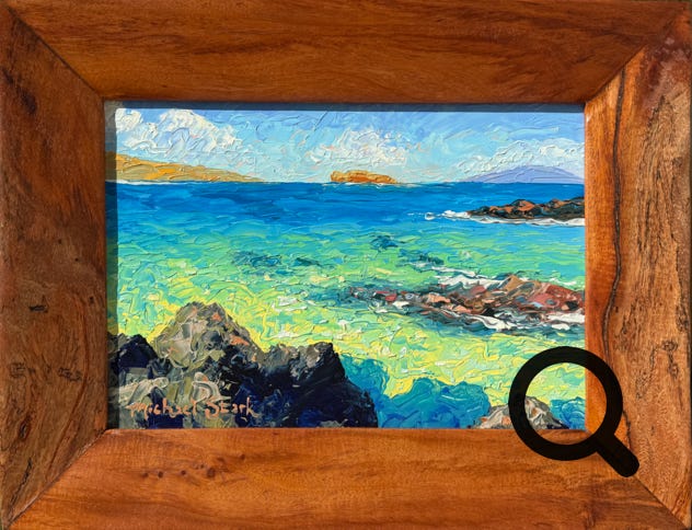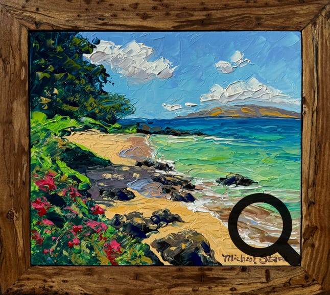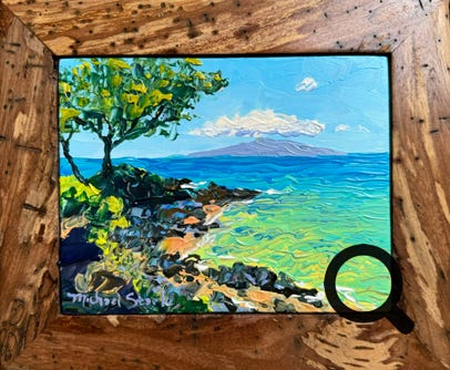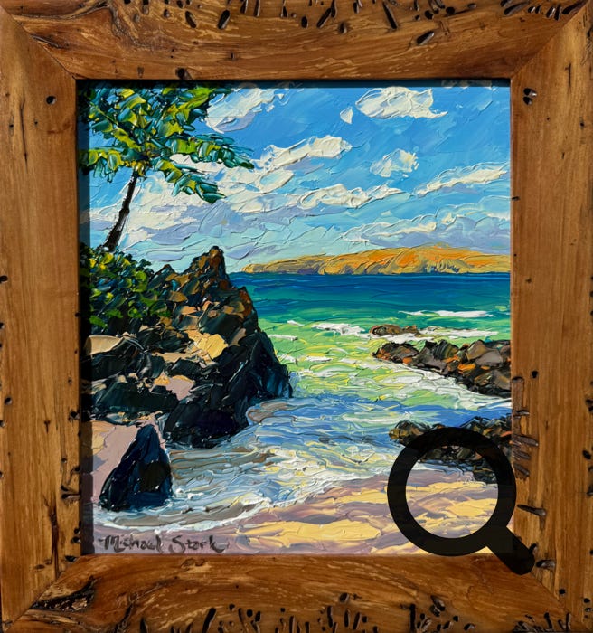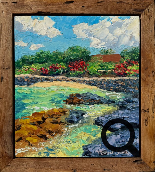 Michael's plein air renditions of celebrated island locales are alive with vibrance and texture. Enjoy the romance of impressionist scenery created on location at different sites around Maui. The beauty of these pieces lies in their ability to capture the light of the moment. If you love a piece, reach out and let me know how to make it a perfect fit for you.