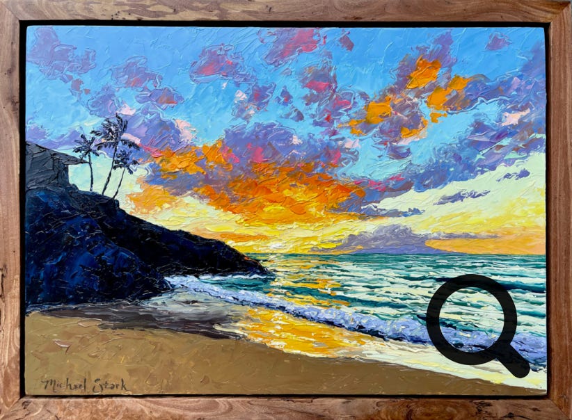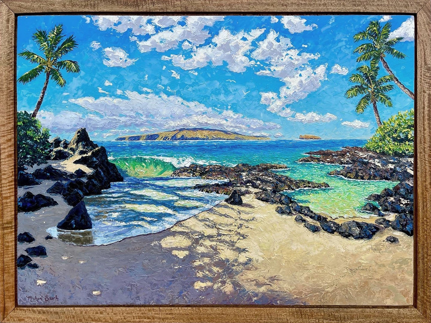Michael's plein air renditions of celebrated island locales are alive with vibrance and texture. Enjoy the romance of impressionist scenery created on location at different sites around Maui. The beauty of these pieces lies in their ability to capture the light of the moment. If you love a piece, reach out and let me know how to make it a perfect fit for you.