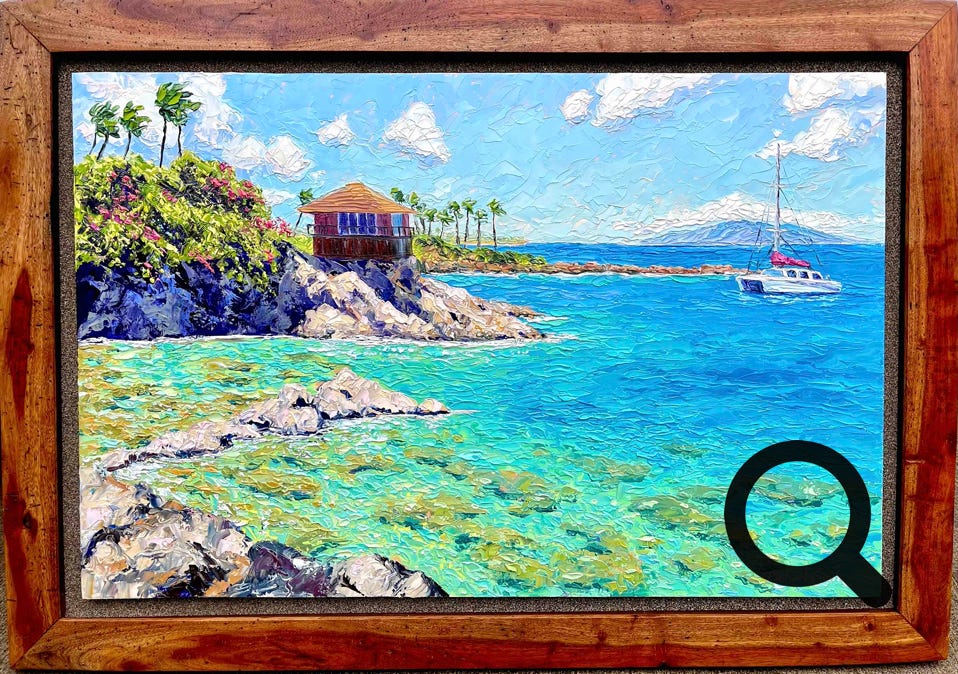 Maui Hawaii Island style art paintings oils koa frames seascape landscape
