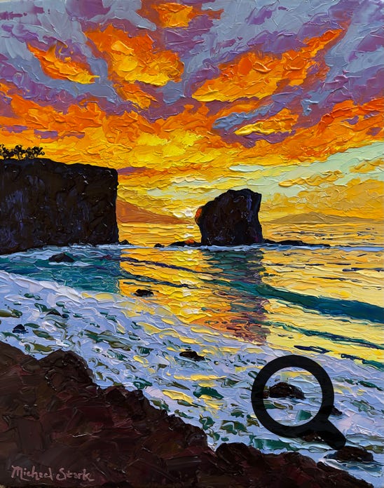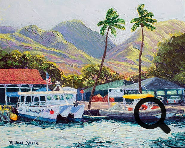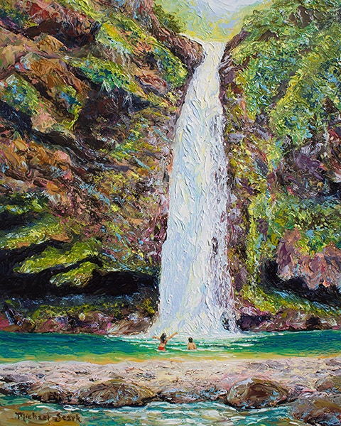 Michael's plein air renditions of celebrated island locales are alive with vibrance and texture. Enjoy the romance of impressionist scenery created on location at different sites around Maui. The beauty of these pieces lies in their ability to capture the light of the moment. If you see the painting here, it is probably sold already, but these are ALL available as stunning aluminum or canvas reproductions in many sizes. Just contact the studio for more info, or click the button at the bottom.