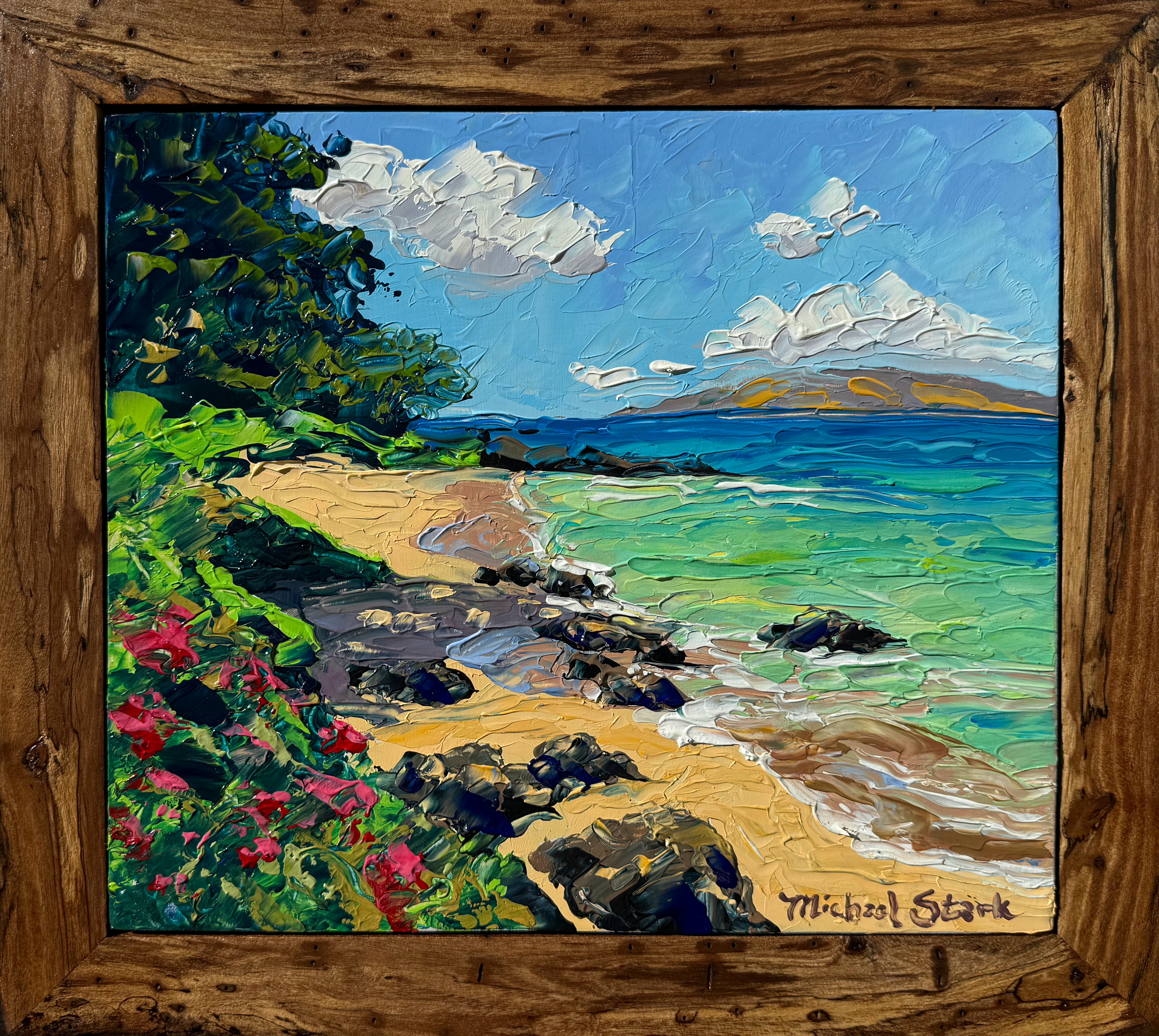 Michael's plein air renditions of celebrated island locales are alive with vibrance and texture. Enjoy the romance of impressionist scenery created on location at different sites around Maui. The beauty of these pieces lies in their ability to capture the light of the moment. If you love a piece, reach out and let me know how to make it a perfect fit for you.